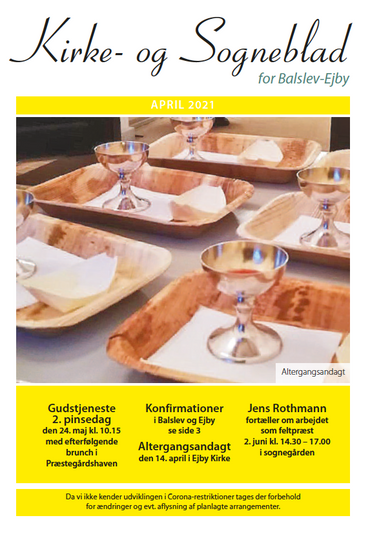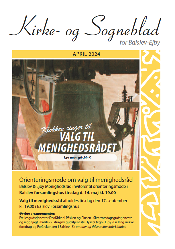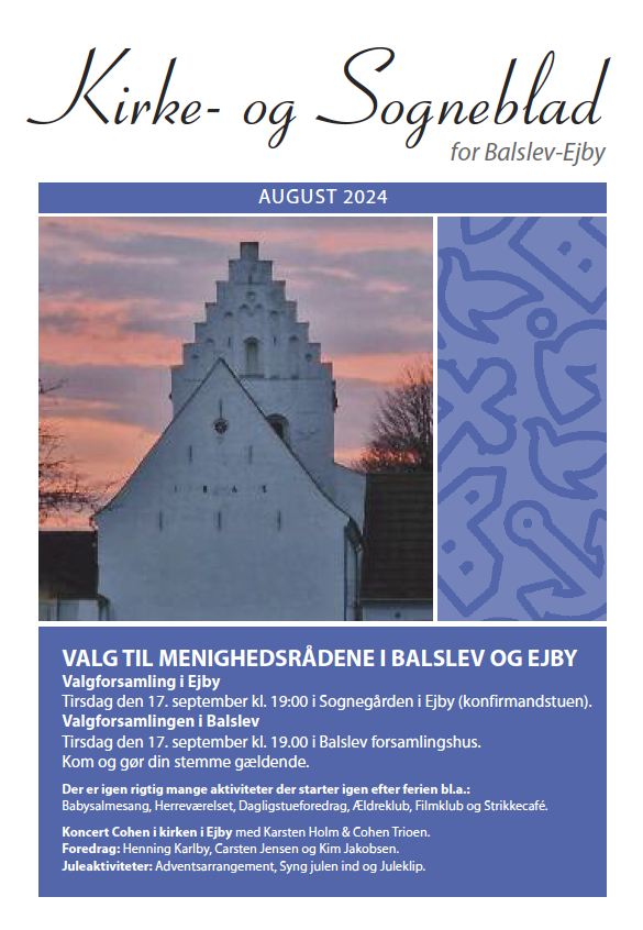 Her på siden kan du finde vores kirkeblad som udkommer 2-3 gange om året. Vi laver kirkebladet i fællesskab med Balslev Sogn. Klik på billederne for at læse med.